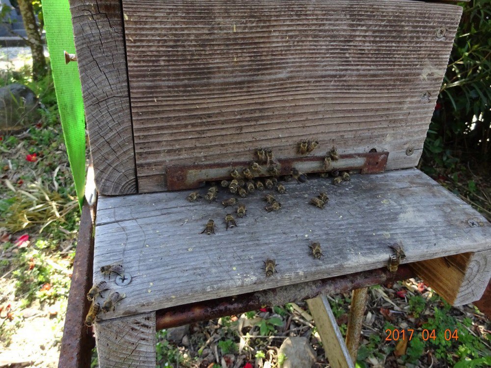 先ほど(21時30分頃)飼育箱の近く(3㍍くらい離れた所)を通ったら、羽音がするので飼育箱に近寄ると、音源は巣門部の箱からでした。夜にもかかわらず大騒ぎしている様子は、分蜂の前触れでしょうか? それとも他に問題があるのでしょうか? その一段目の箱は、出入り口を残してハチが満杯状態です。4月1日に雄蓋が巣門前デッキに出ているのを確認しましたが、今朝(4月3日)にはそれが全くありませんでした。