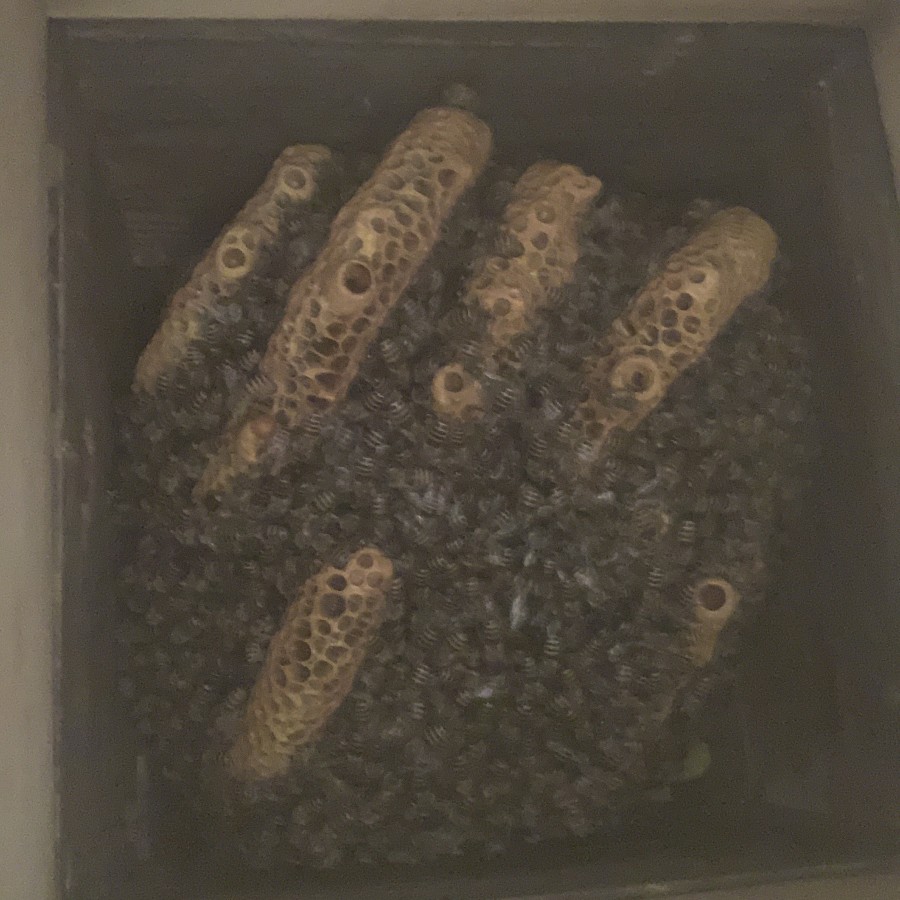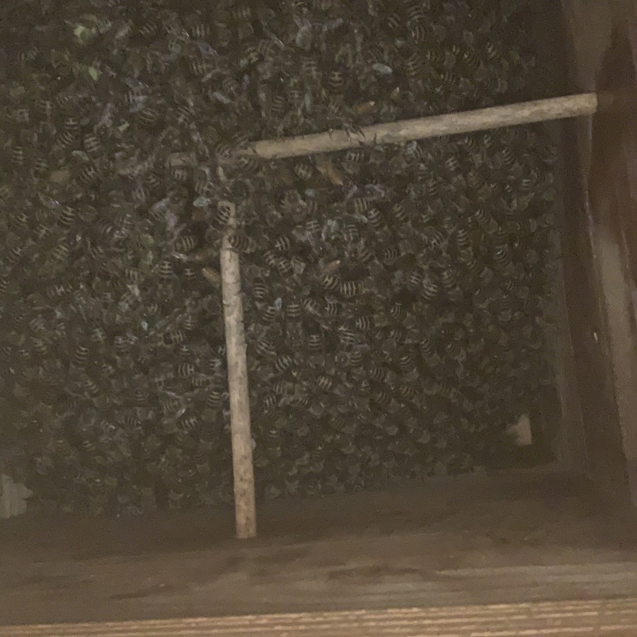 元巣(4女群)は分蜂で蜂数が減っているが、王台を見ると現在元巣を引き継いでいるのは4女で良いのかな??よく分かりません(笑)
