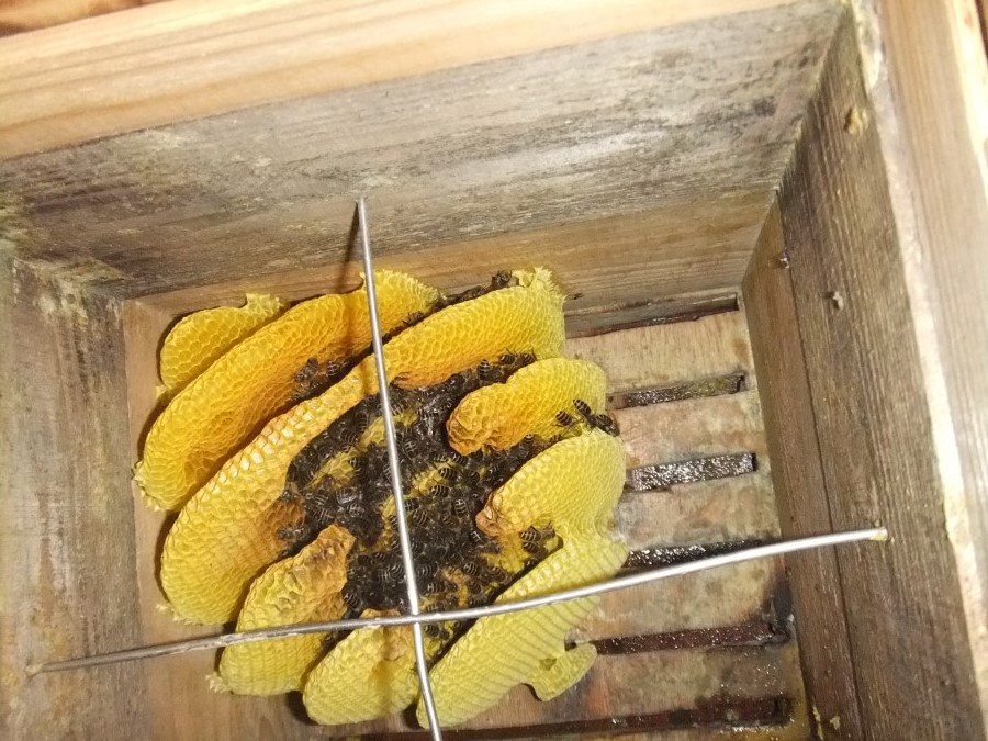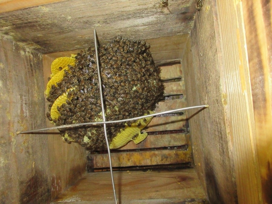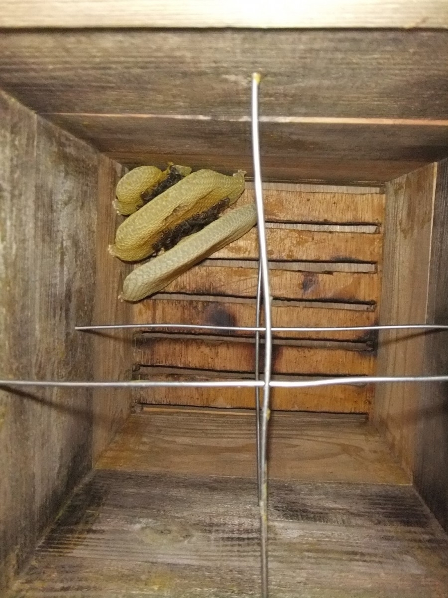 福岡市南区在住 2019.4.19分蜂ゲットでスタートする。8月巣落ち、冬越し、2020年アカリンダニ克服するも弱小群となり、復活途中に近くの雨樋下に何故か逃避...
