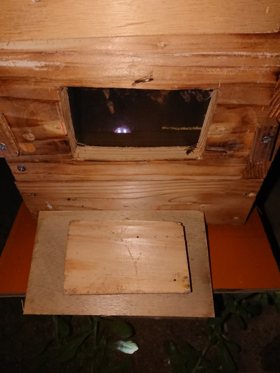 随時観察は出来ますが、窓が結露、傷、蜜蝋等で汚れが出て、ピントが合いにくく、またフラッシュはハレーシィンを起こし、写真撮影はちょっと工夫が必要です。透明板は何が最適か解りません(改善点は沢山ありますから工夫してトライしてみて下さい・・・興味あればです)