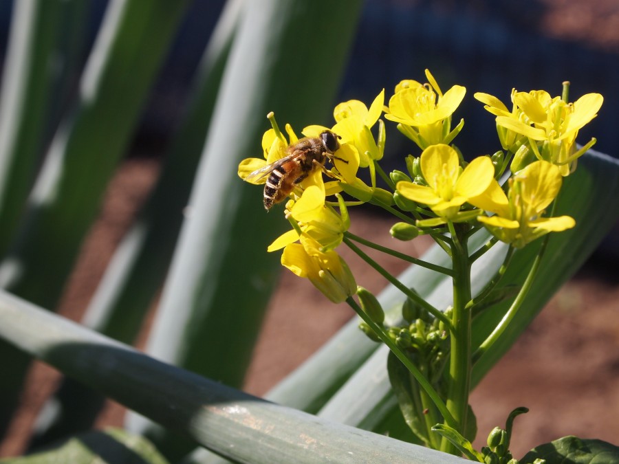 こんばんは、葉物野菜が少なくなるので、モンシロチョウも必死です。自然の恵みに、人もミツバチも授かりたいですね。