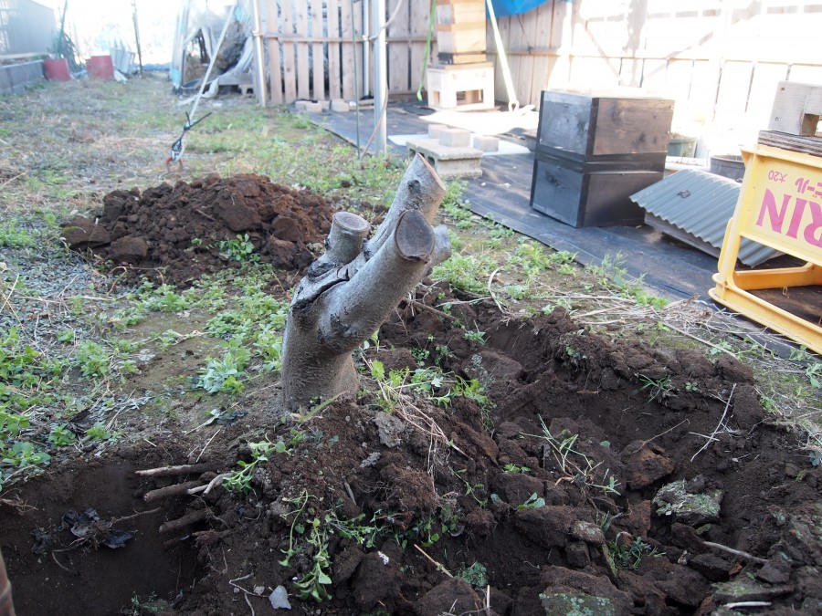 こんばんは、ヤマモモはニホンミツバチの巣箱より先に植えられていたのに、切られることになりました。