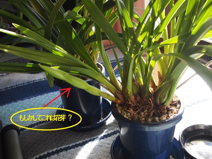 はい、花芽です。この2鉢は、普通のシンビジュームです。手前がピンクの花が咲きます。奥は、白い花が咲きます。(笑)