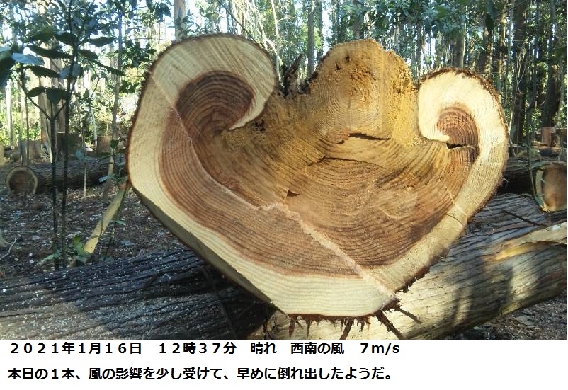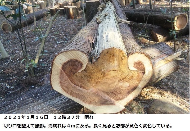 腐っている杉は、面白い形でなんとかこの造形美を生かしたいと考えています。