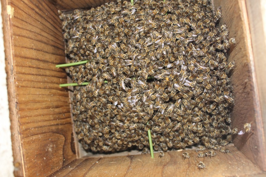二ホンミツバチは、巣板を下に向けて大きくしていきますが、伸び過ぎた巣板を噛み落としてそこに新しい巣を作ることが確認されています。特に、春から夏にかけて幼虫を育成した巣碑を2度と使いませんので、不要になったスタを噛み切って落とす事が有ります。