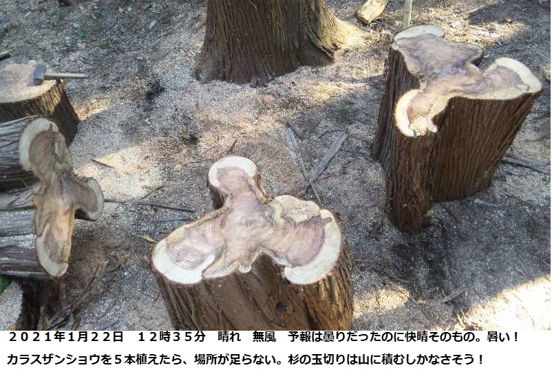 2021年1月22日 (金) 快晴 気温は10℃前後だけれど無風なので、陽当たりの良い場所は真夏のよう。