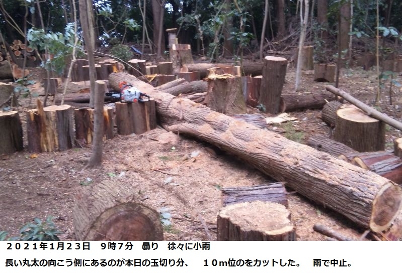 切り株の抜根はしないが、玉切りしたものはどこかへ片づけようと計画していたが、ゴロゴロのままでも良かんべ~~と、方針を変える事にした。
