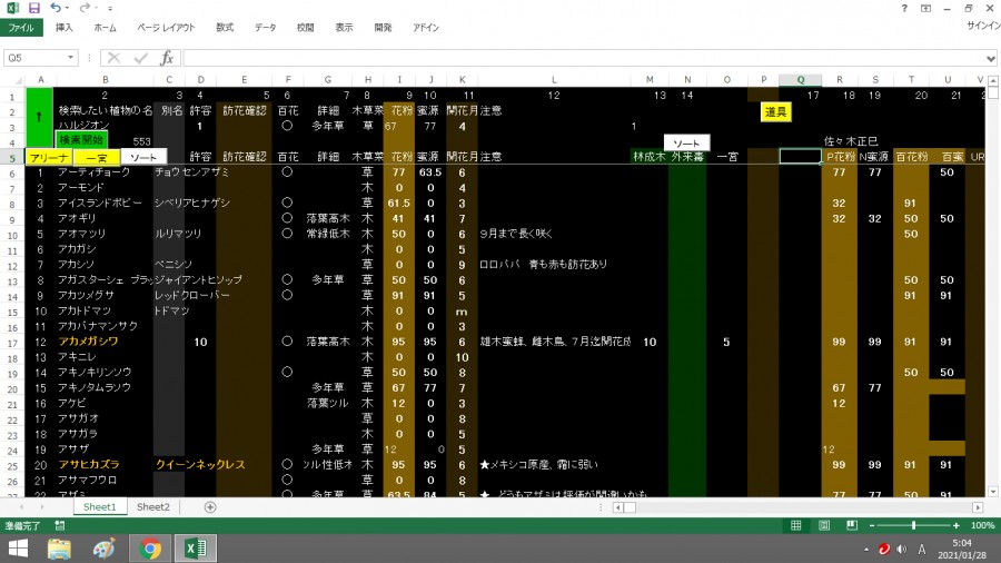 この「草花と樹木の蜜源」のグラフは、S先生とhttp://db.bee-happy.jp