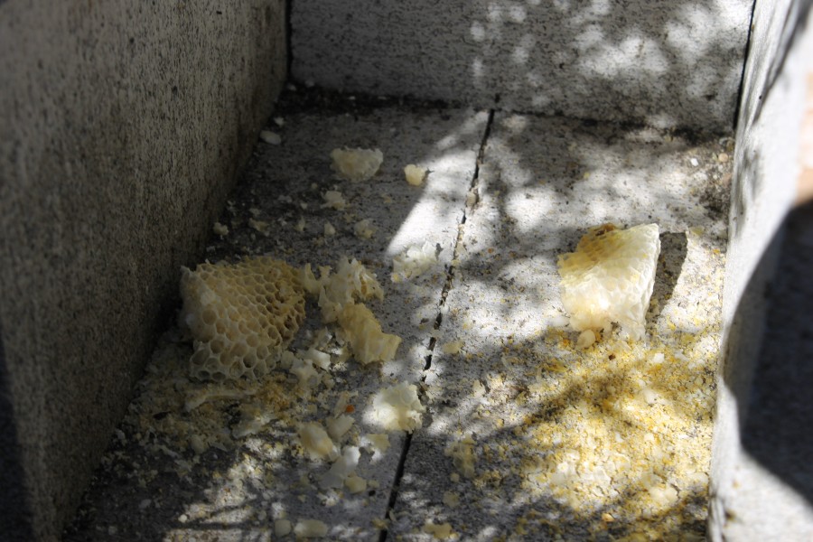 watayohさん 冬は非常に狂暴になるのでソーーっとしておくに限ります。ニホンミツバチは蜜を食べてあとの巣を囓り落として空間を作り、蜂球になるので巣屑をたくさん落とします。これは寒冷地ほど多くなりますが、そのまま置いても大丈夫なのでもう少し春になってから掃除するので良いでしょう