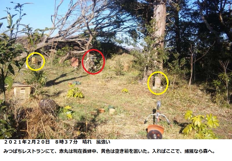 なにしろ赤丸に1群だけ養蜂しているので、上手くすれば自然入居があるかも?!