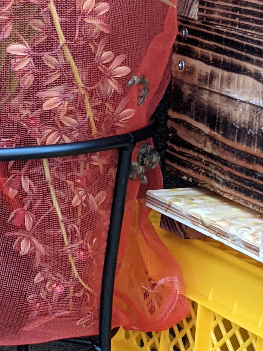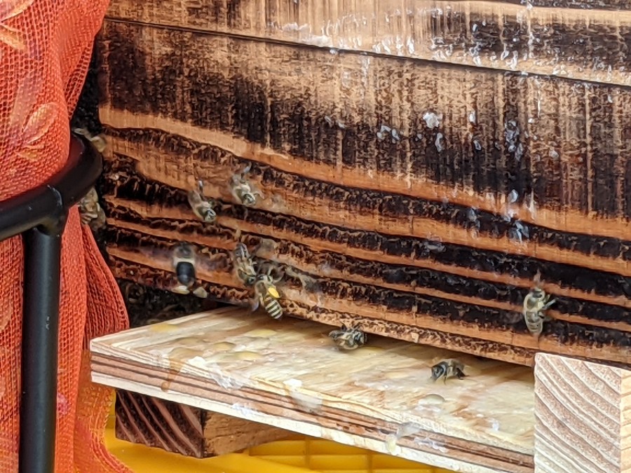 毎日何度も眺めたり、あれこれ「蜂に都合いいように」などと弄ると迷惑がられて、体当たりされます(次は刺されます)