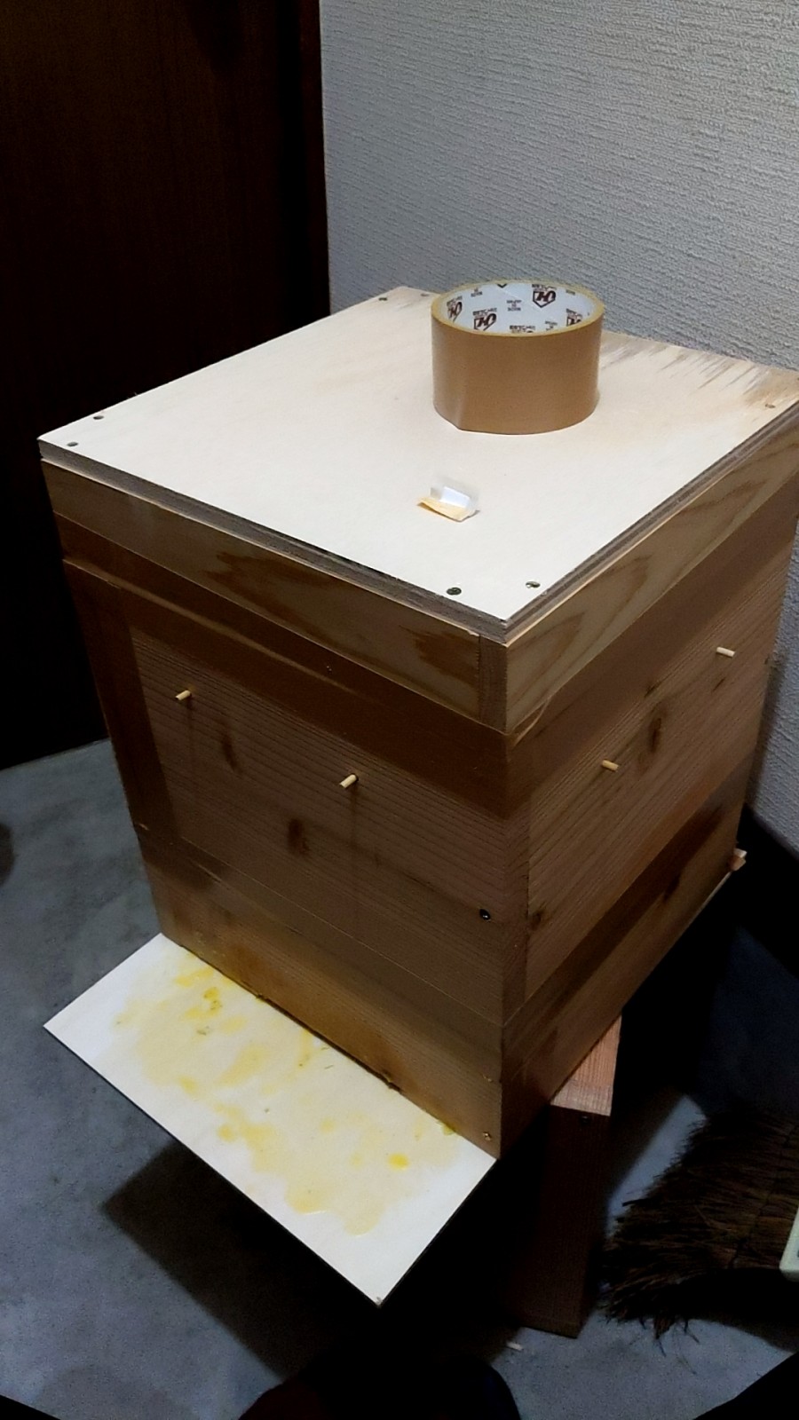 特に天板は、厚く蜜蝋を塗ると、蜂がかじり落とします