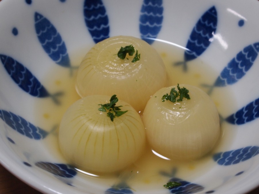 こんにちは、ネットでレシピを調べて作りました。コンソメだけで煮込み、玄関脇の鉢植えパセリを乗せました。