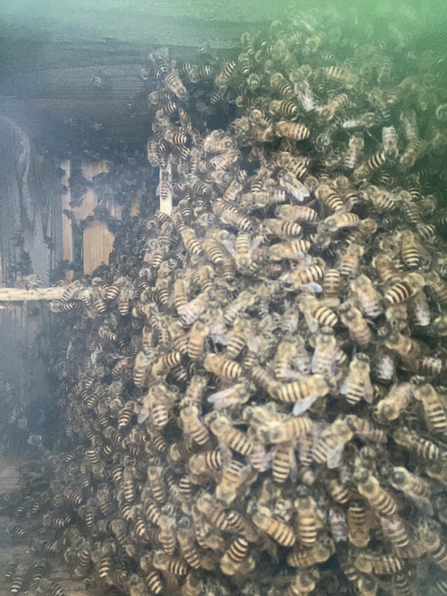 なるべく煙が巣箱にいかない程度にしか焚けなくて、むっちゃ刺されてます( ;∀;)