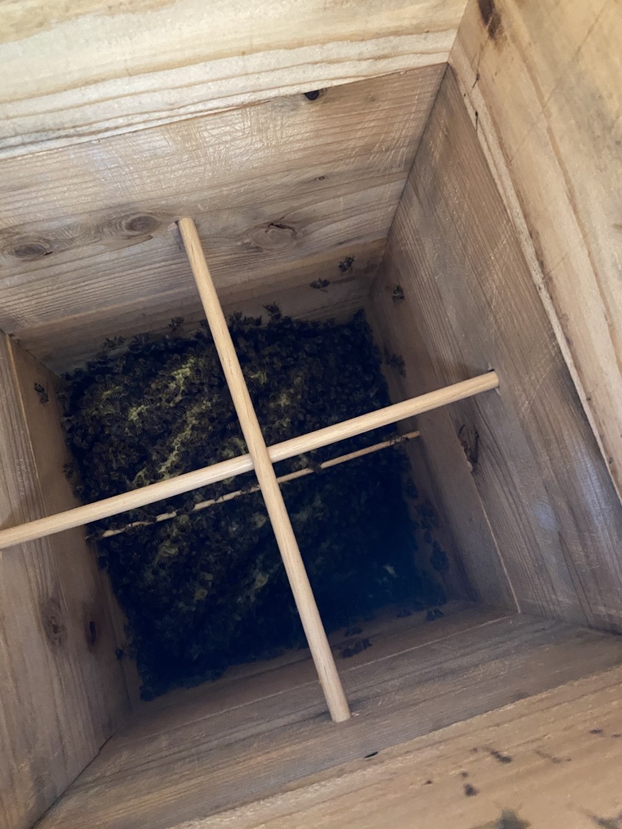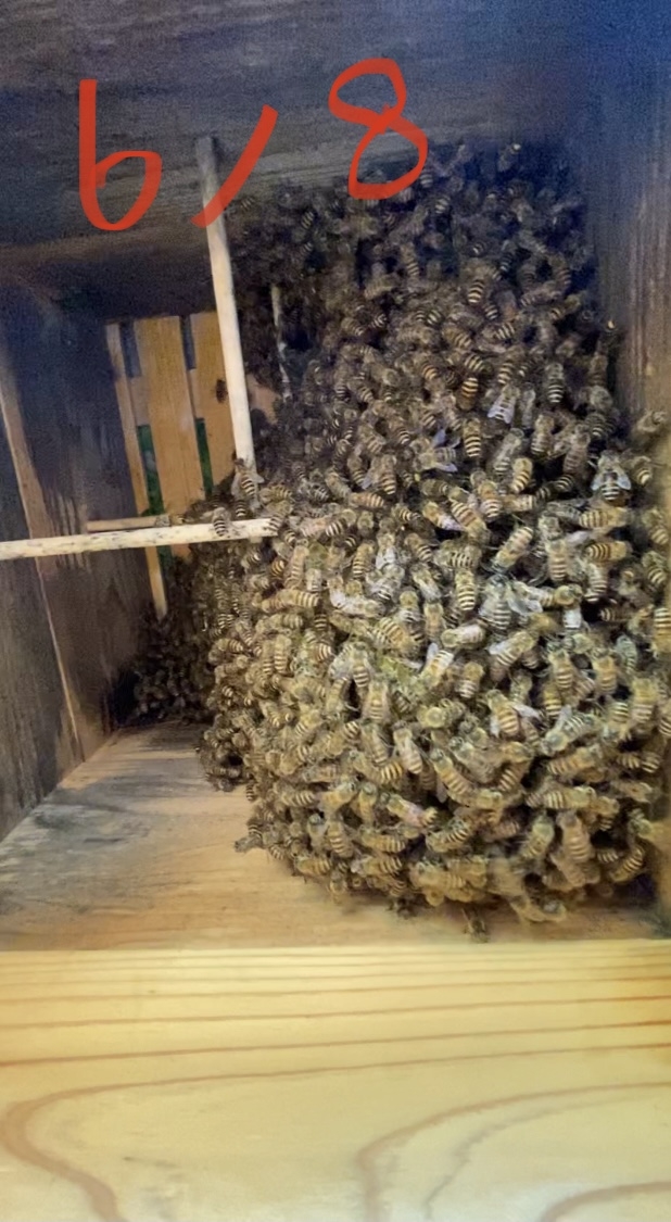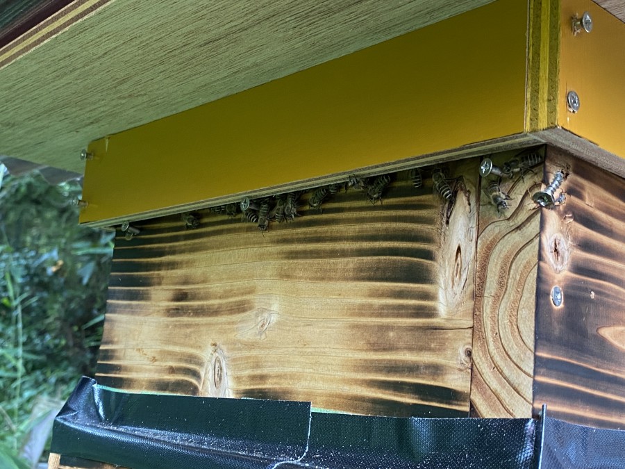 福岡市南区在住 2019.4.19分蜂ゲットでスタートする。8月巣落ち、冬越し、2020年アカリンダニ克服するも弱小群となり、復活途中に近くの雨樋下に何故か逃避...