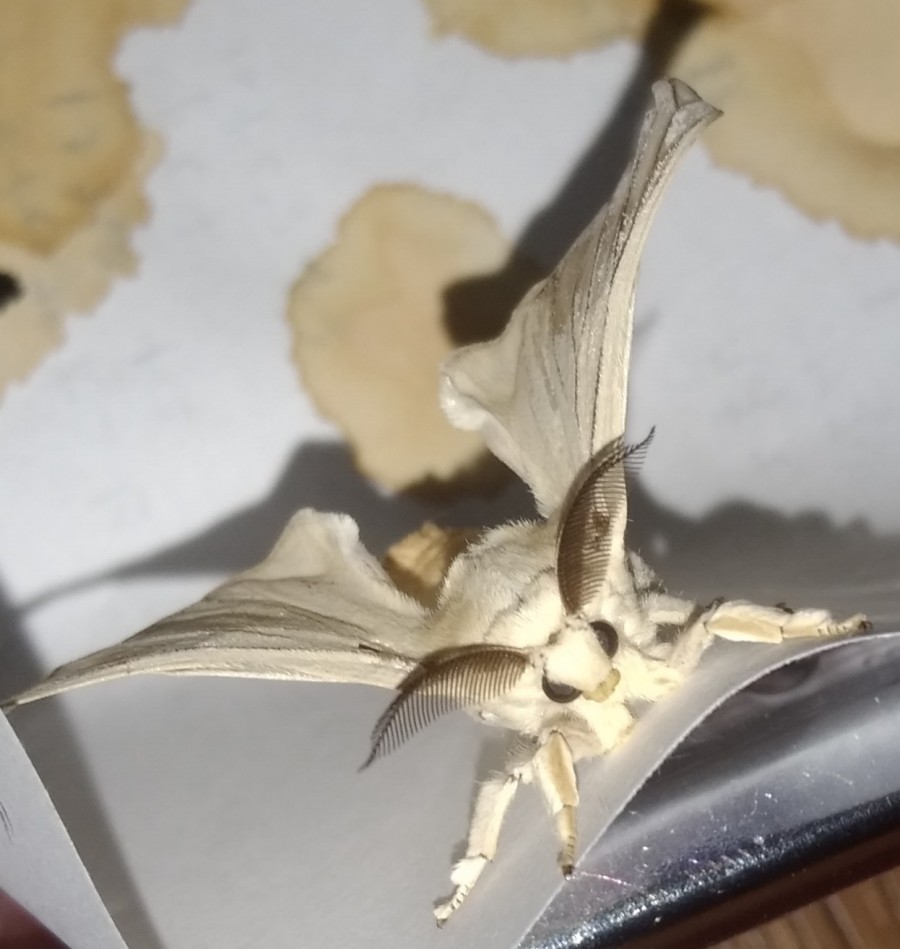 こころして観てください。卵を生み続け羽も産毛もボロボロになり、力尽きる前のおかいこさんです。