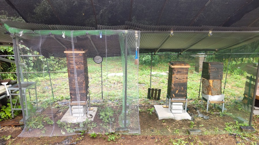 これはスズメバチが来ない春頃から日本みつばちに練習をして、障害物競走に馴れて貰う必要があったのかも知れません。