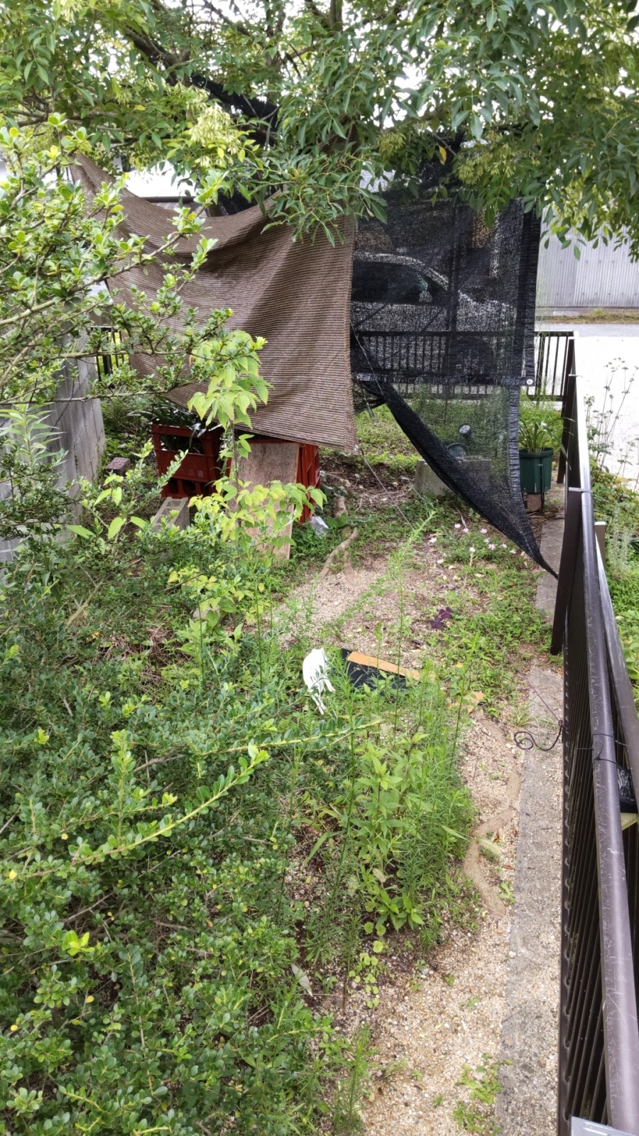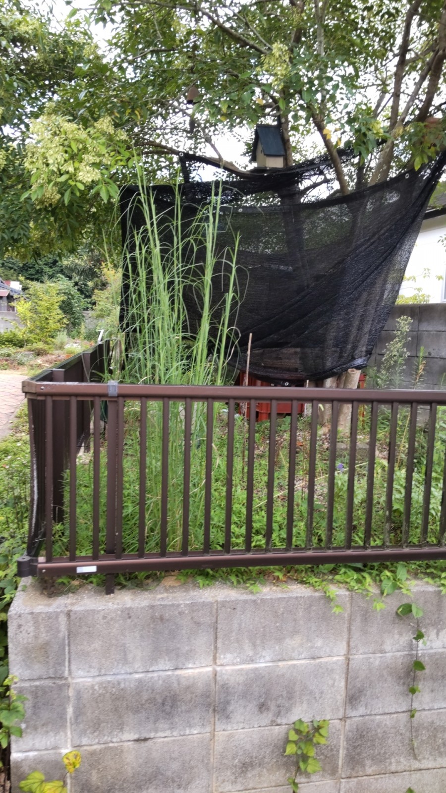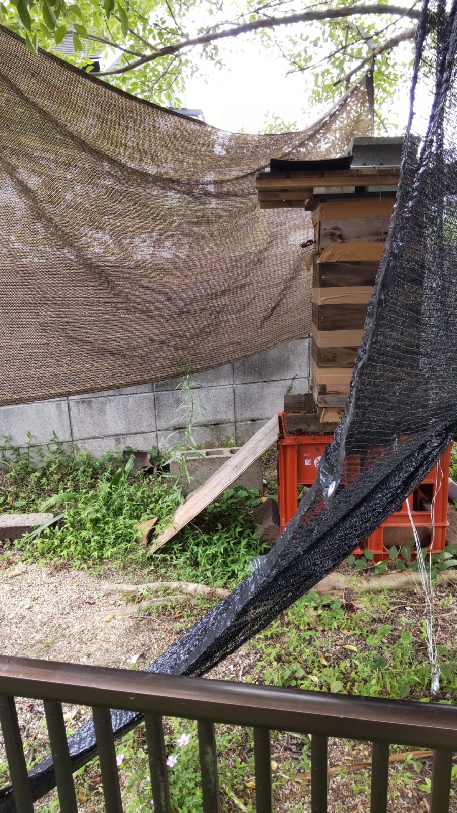 西側は西日を遮る。遮光ネットが薄手なので、折りたたみ巣落ちを予防。