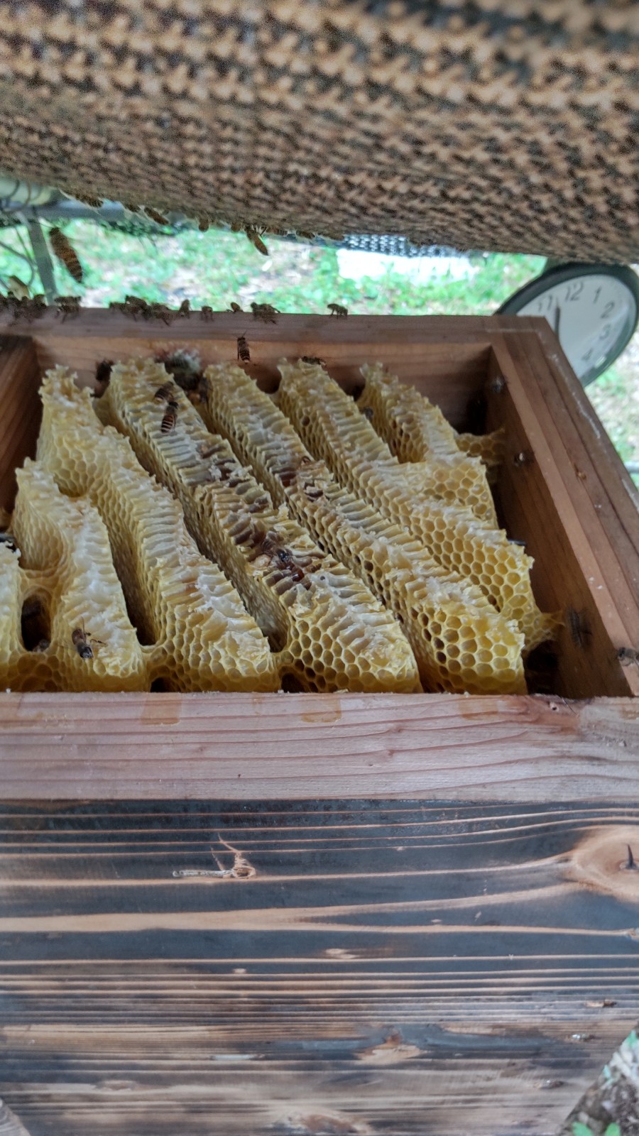 切り取ったあとに、4段目に蜂が居るなら、ここでやめたほうがいいと思います