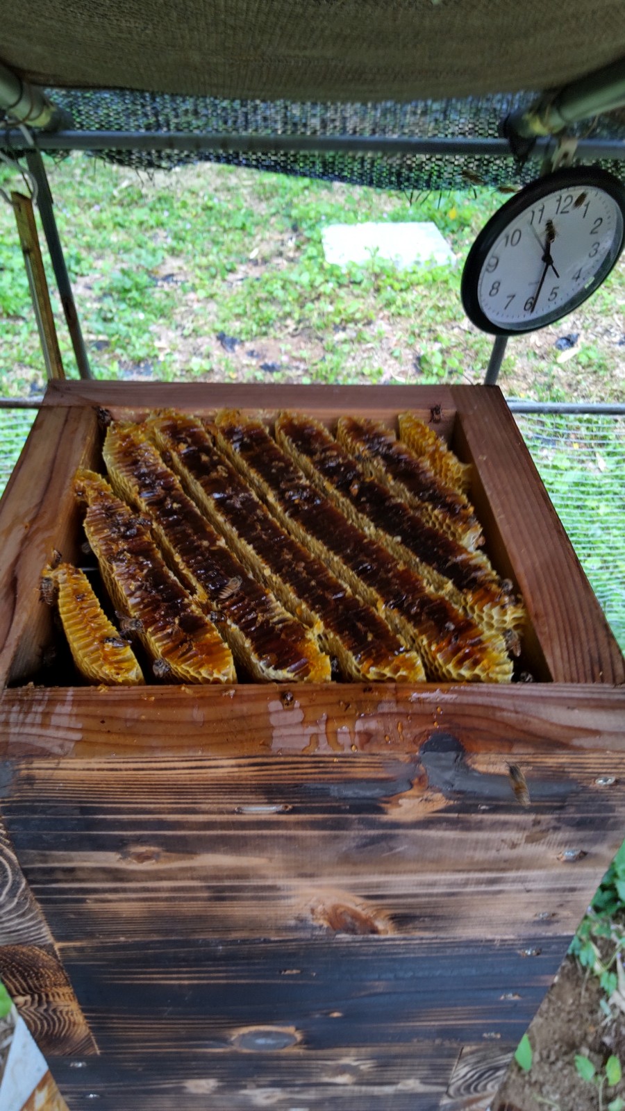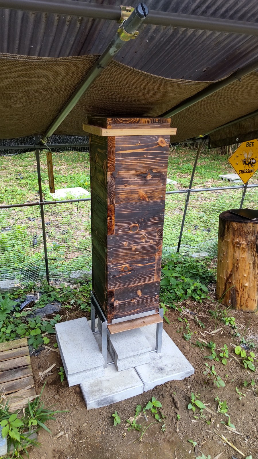 日本ミツバチは森林組合の友人から2012年巣蜜をいただいたのと山荘の薪小屋に日本ミツバチがたくさん来ていたので何か自分でも知らないうちにやっていました。宜しくお...