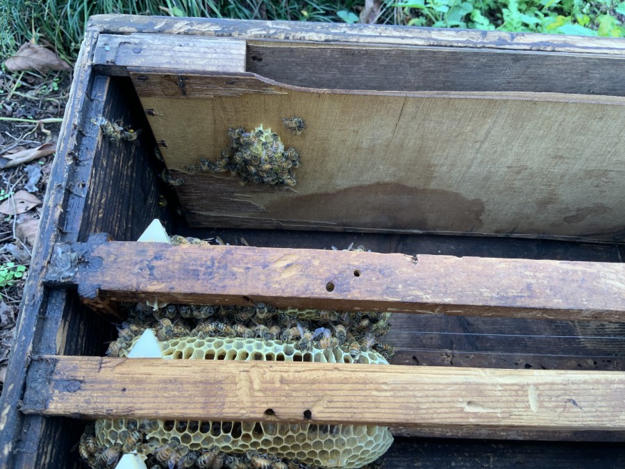 おかげで小さい巣が蜜でパンパンです。重さも明らかに違います。