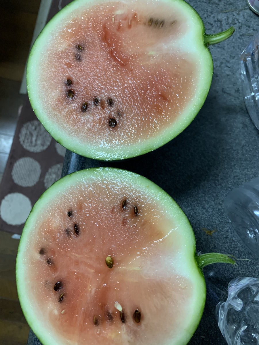 この時期にスイカが普通に出来ていてビックリです。種は真っ黒になっていましたが、見た通り熟してはいませんでした。でもしっかりスイカの味はして甘さも控えめながら食べる事は出来ましたよ。