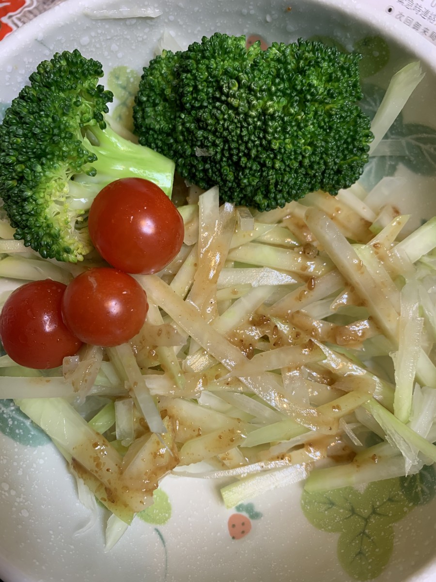 凄い歯応えが有り、ゴボウに近いかな?そして味は、、、特に感じません(笑)ゴマドレッシングを掛けて食べましたが、とても美味しく頂けました。