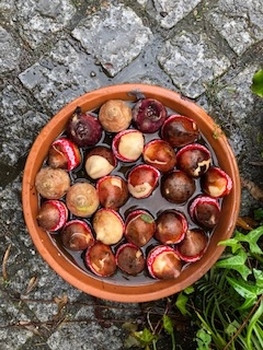 チューリプやヒヤシンスの植え付けお疲れさまでした。チューリップはどんな色の花が咲くのかも一つの楽しみになっています。