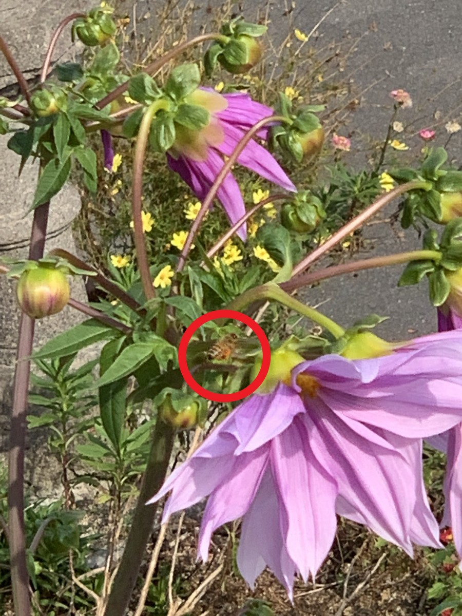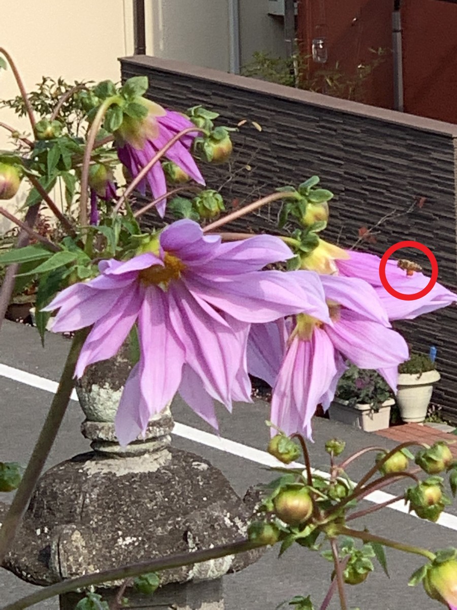 皇帝ダリアが咲き始めると、きっとミツバチは見付けて訪花すると思います。楽しみにしておいて下さい。