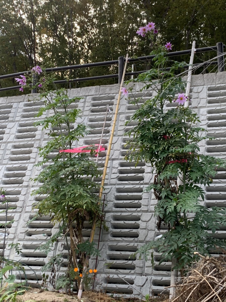 背が高く伸びてくれたお陰で擁壁の上から間近で見えます。予定通りの想定内です(笑)