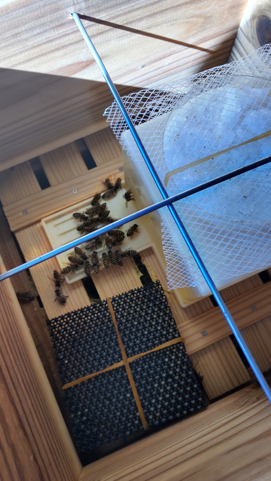 私は日本みつばちには給餌しませんが、西洋ミツバチに与える時には温かいままで給餌しています。蜂球温は体温ほどあるのでその方が冷えないかな~ぁと考えましたf(^_^)
