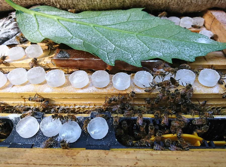 いつもありがとうございます(^O^)冬場の給餌方法参考になります!ところで、最後のはどこでも売っいる塩飴?なんでしょうか?葉っぱも気になります!