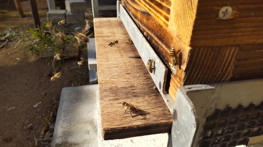 貯蜜が少ない場合は給餌も必要ですが、寒くなる前に給餌して越冬するのがいいです。