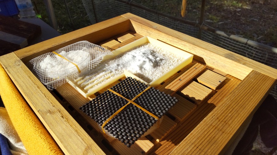 熊本でもかなり寒くなっていると思うので今の時期の給餌はハチの負担を増やしてしまうのでやらないほうがいいです。冬の間はできるだけ動かないようにして産卵も減らし、体力を温存して春になってから多くの幼虫を育ててもらうのがいいのです。