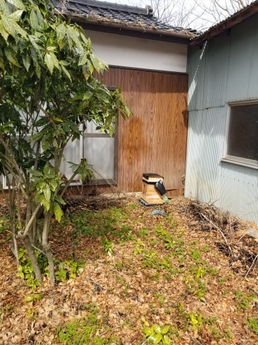 >その前にお墓に行く小道がありまして大木の直近に置くと巣門が小道に向いてしまいます。逆を向けると建物に向いてしまうので
