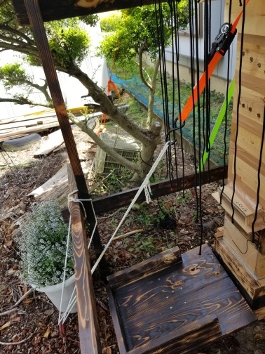 只あまり長いとミツバチさんが帰巣するときに垂れ下がった紐にぶつかります(笑) でもスズメバチは紐の間をホバーリング出来なくて巣門の前での待ち伏せ捕食が出来ませんです。