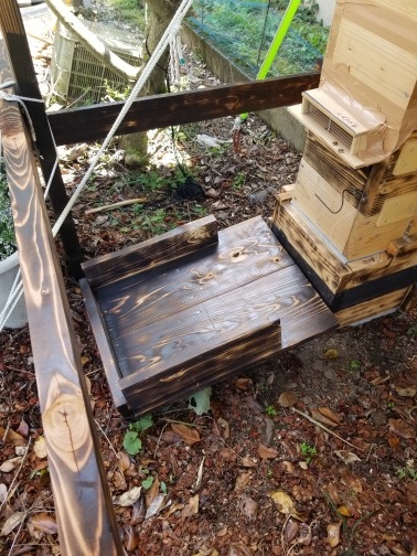 異常な蜂さんの発見とかに役立ってくれる事を願い余った板を置きました近くの先輩が板を立てかけていた姿を思い出して取り付け