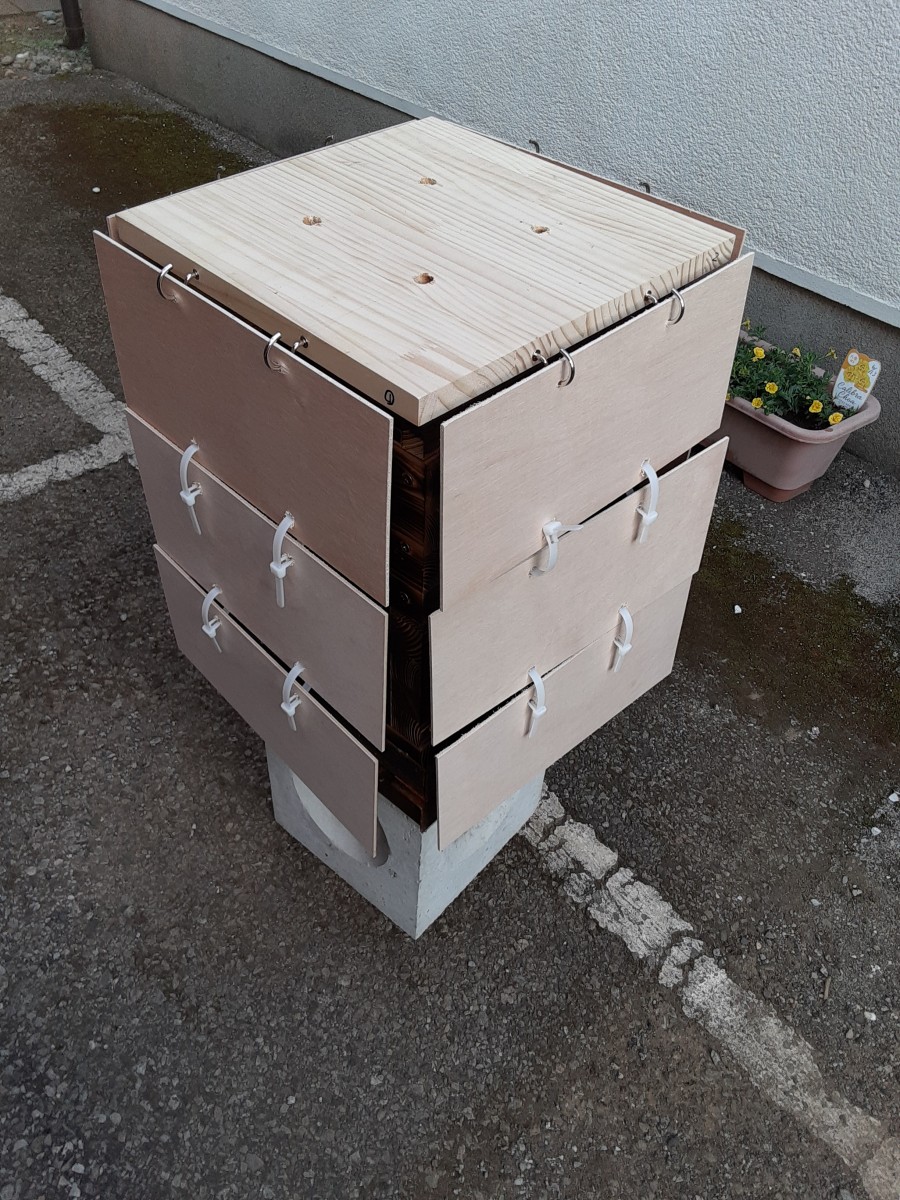 巣箱は果樹園さんの敷地内にあるんです。置かせてもらう交渉の時にご主人からは「いつでも勝手に入っていいよ」と言ってもらいました。とはいえ長居するのは申し訳なく思ってしまうんですよね。なので少しでも滞在時間を短くするように考えたらこの簡易的な構造になりました。その結果、おっしゃる通り安く済んでしまいました。何もかもが初めての経験なので考えながら作っている時が1番楽しい時間です。小学生が遠足行く前に準備している時のワクワクと似ているかもしれません(笑)