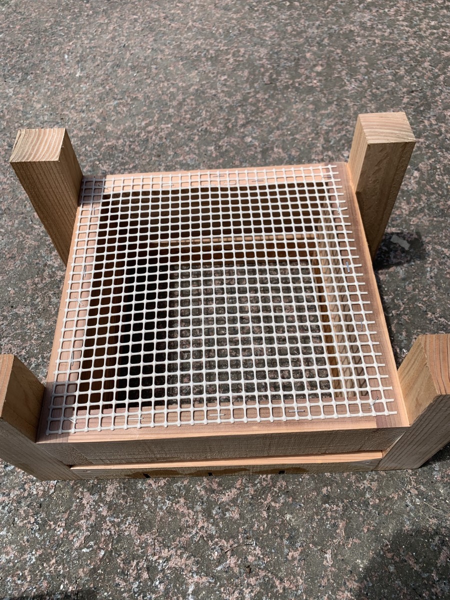 スムシ対策で巣箱底をネットにする方がいますね。私は守門枠を2週間毎に別のと替えています。それでも底板には、その都度スムシの小さいのが数匹います。ネットだと掃除しなくいいんでしょうか。それなら楽でいいですね。