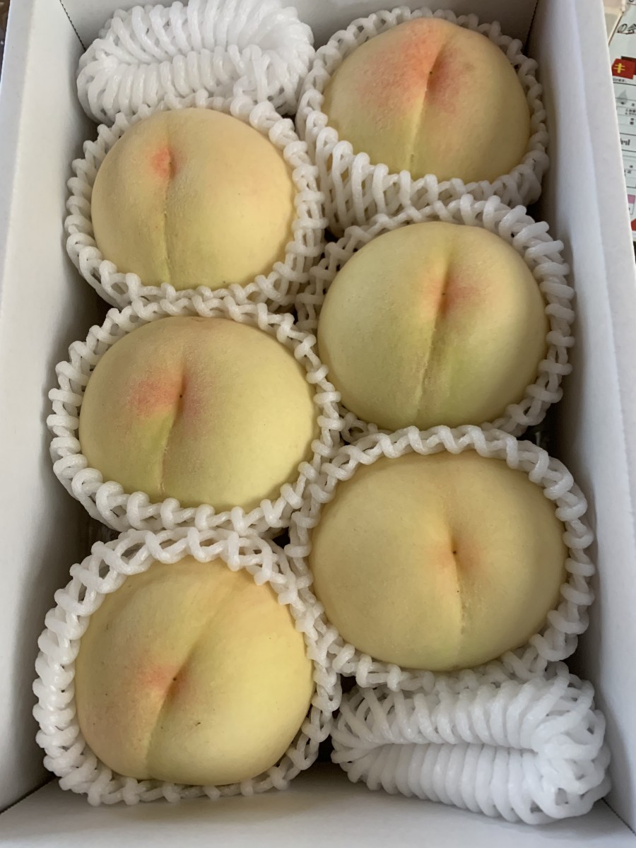 同じ白桃でも色々な種類が出ていますので品種を確認の上しっかり買って帰って下さい。なお、常に補充されていますので買い占めは出来ませんよ(笑)