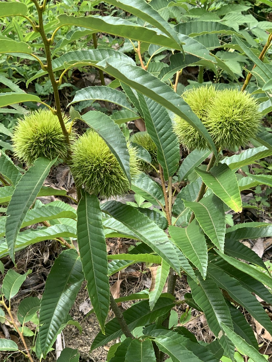 立派な栗の実がつきましたね~そんなに大きく無くても実は付くのですね❣ちょっと希望が湧いてきました、というのも去年植えた栗の木は土手の雑草伐採時に切られまして、懲りずに今年も植えましたが、またもや継木の部分で切断されてました。何だかわざと・・・苦々しくおもってましたが、下の部分から新芽が成長してきました。芯がないので大きくならないだろうと思ってましたので、この日誌で希望が・・・無理かなぁ(;^ω^)