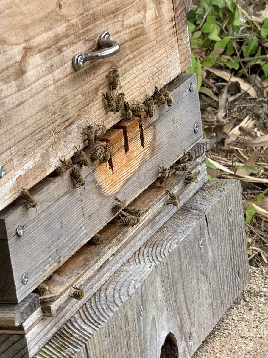 福岡市南区在住 2019.4.19分蜂ゲットでスタートする。8月巣落ち、冬越し、2020年アカリンダニ克服するも弱小群となり、復活途中に近くの雨樋下に何故か逃避...