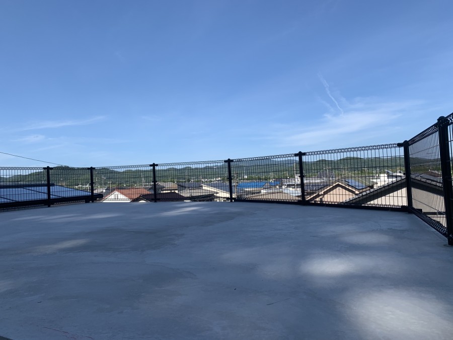 二棟目の屋上にはフェンスが出来ました。テーブルや椅子を置いてオーブンカフェとして来客を接待出来そう^_^