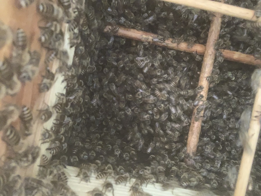 そして、いつ見ても巣門周りに蜂がたむろしている群の内見をしてみました