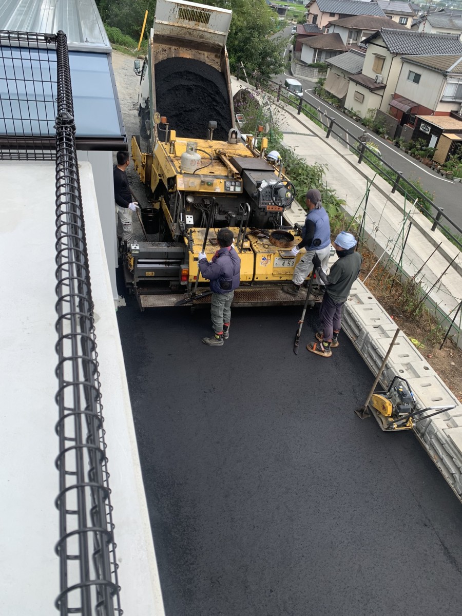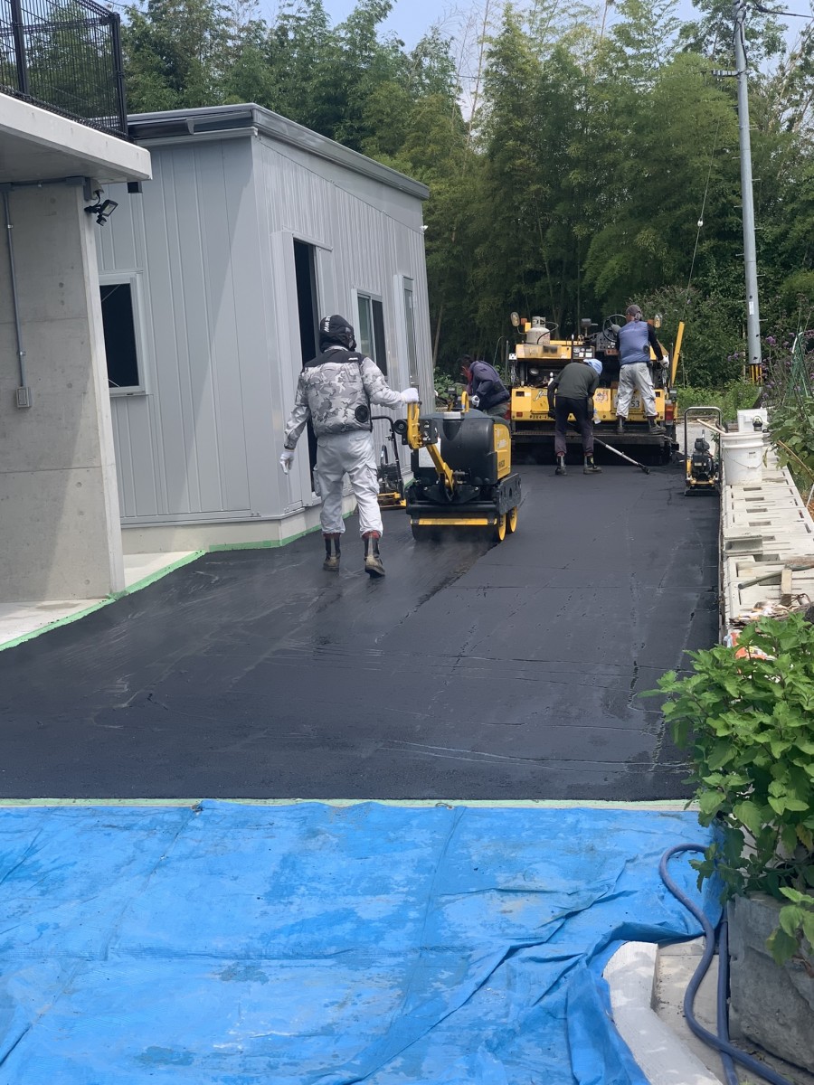 何ですか?自宅にアスファルトをする所があるのですね。初めて見ました。私としては2棟ある間のガラス?の天井が気になりました。ここは何のスペースになるのでしょうね?(^^ゞ