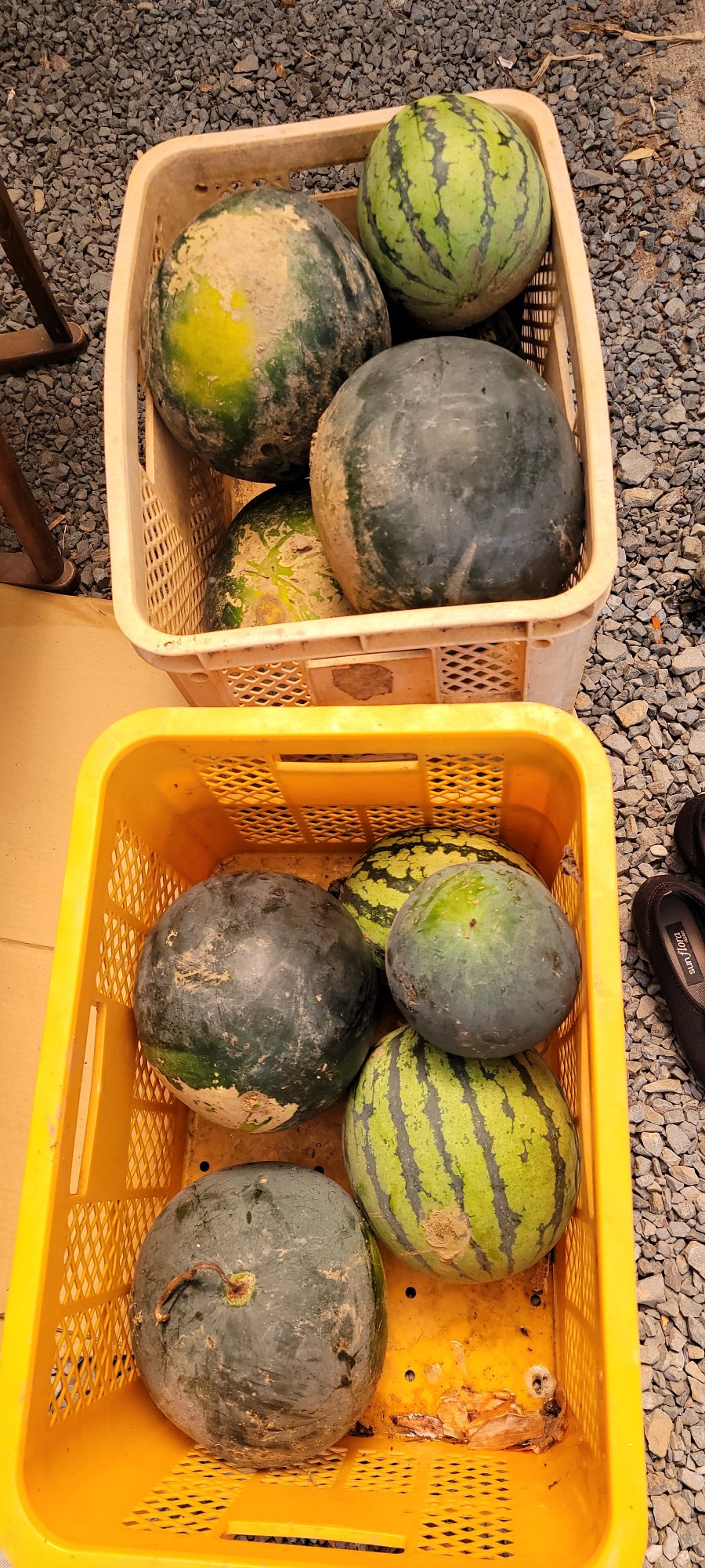 沢山のスイカ収穫出来ていますね。私はせっかく苗を取り寄せて植えたにも関わらず今年は1個口に入っただけです(๑>◡<๑)