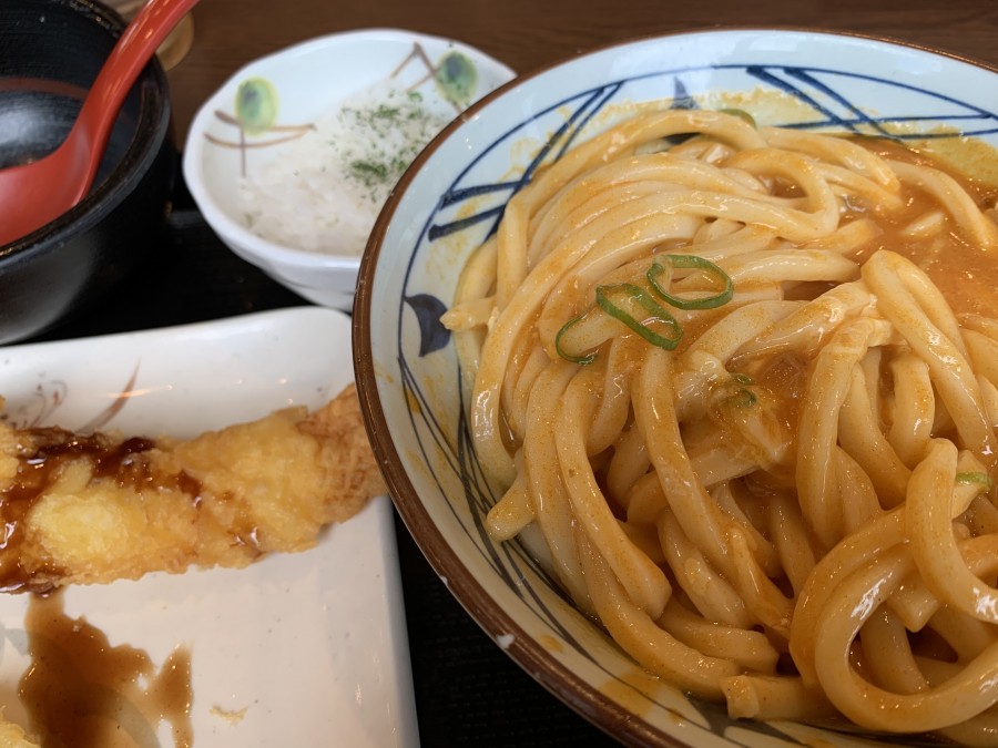 本人の食べたい物を聞いてお昼はうどん。私はTOKIO監修チーズトマ玉カレー