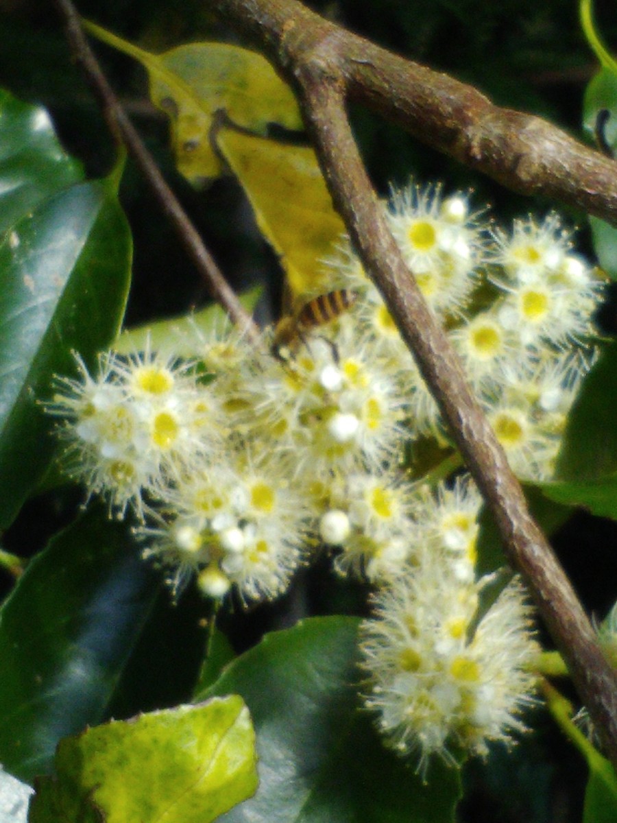 本日は、数本ある実生ビワの蕾がポツポツ開花して、訪花もありました。