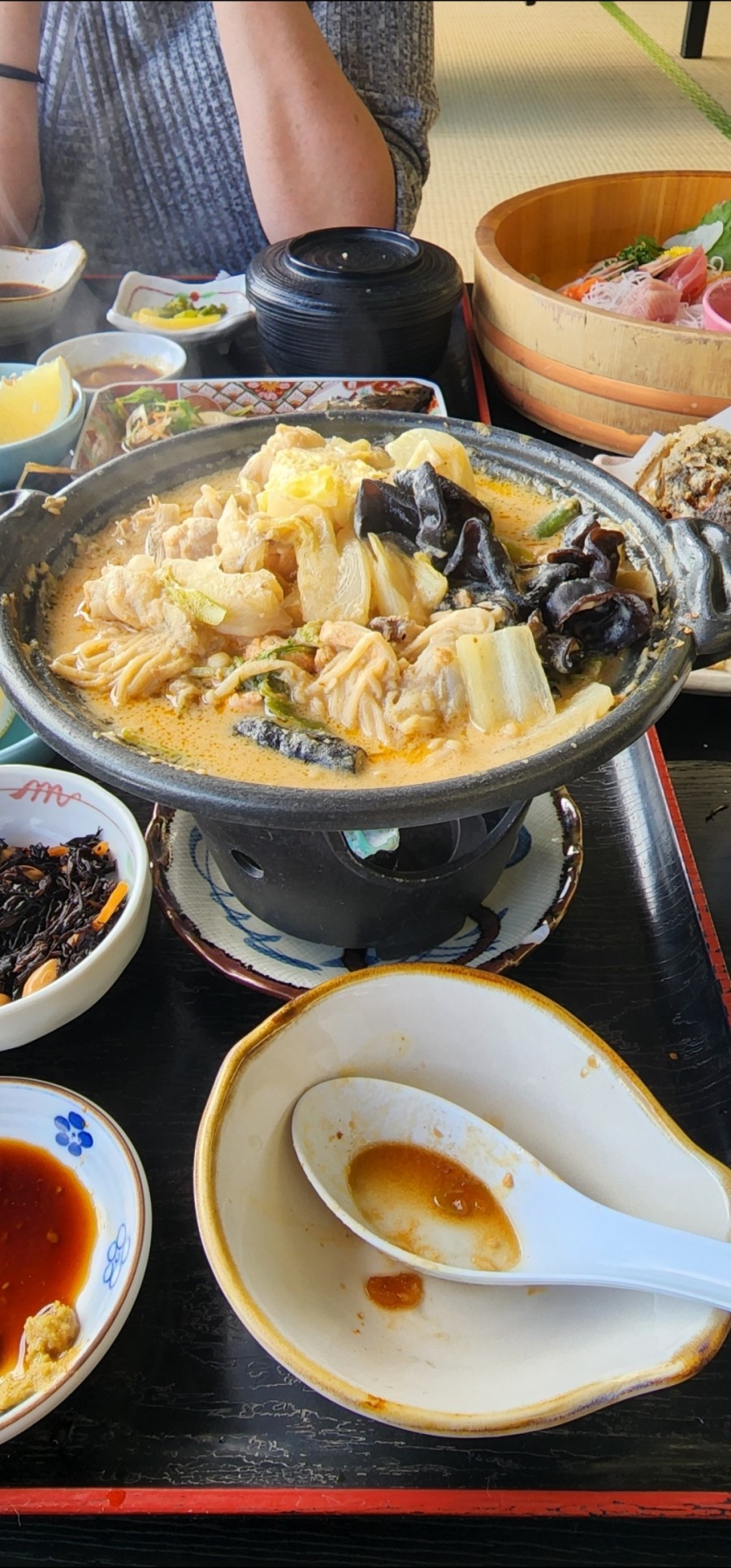 アンコウ鍋とどぶ汁は肝が溶いて入るか入らないかの違いみたいです。名前に似合わず美味しかったです。