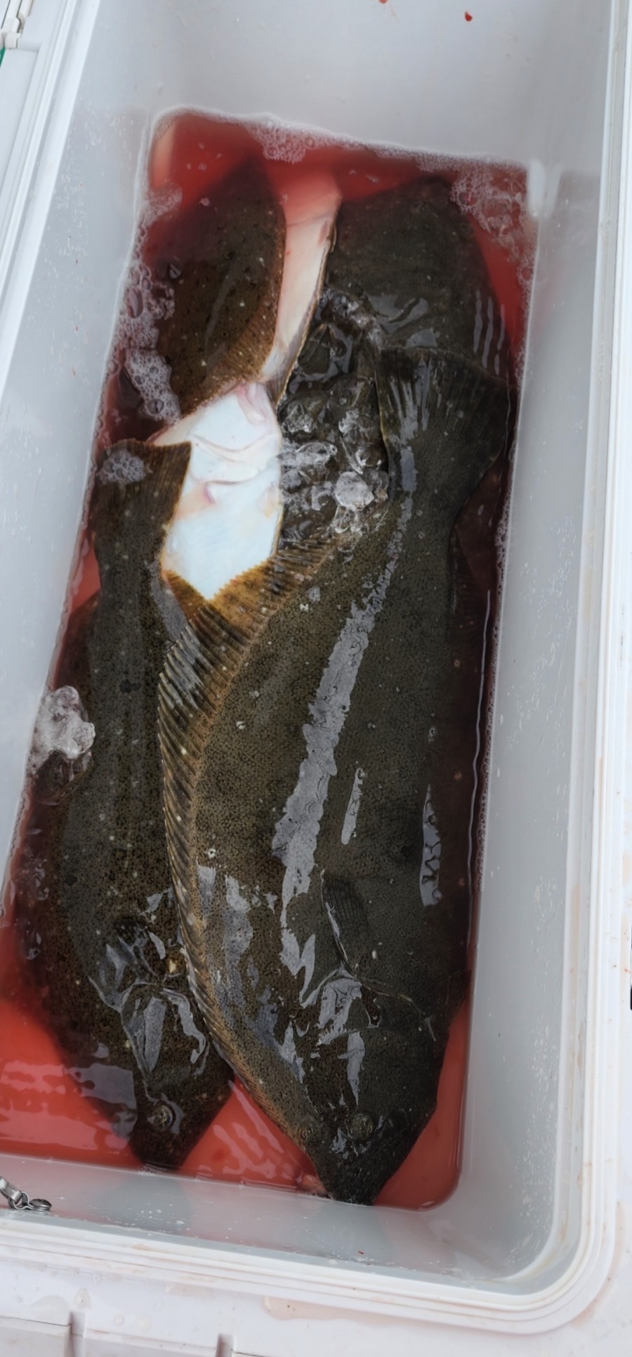 たった今帰宅しました。 波が荒くてウネリもあり大変でした。1日寝かせて明日刺身にしたいと思いますって私食べる人(笑) 平目は嫁の方が裁き上手いので私は箸持って待ってます(笑) クエはまだそんなに大きなのは上げた事ありません。マグロは45キロまではありますが